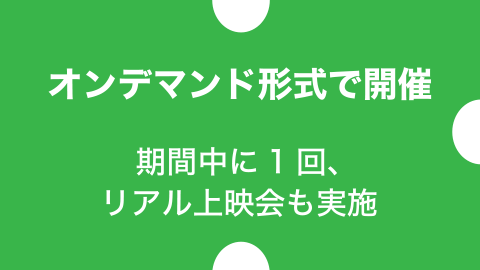 | 開催形式 | 上映:オンデマンド配信 トークセッション:リアル開催&同時配信を予定 |